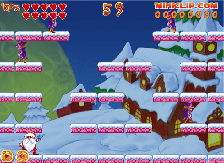 - Festive Shooting Action: Use your freeze gun to stop enemies and protect Christmas.